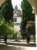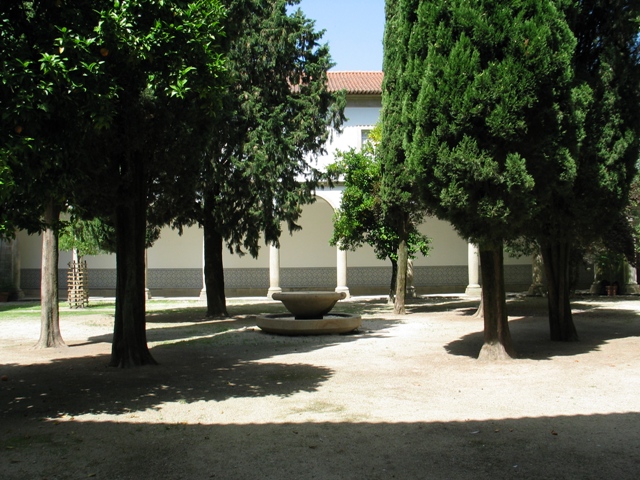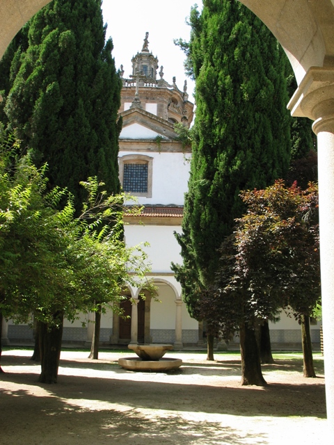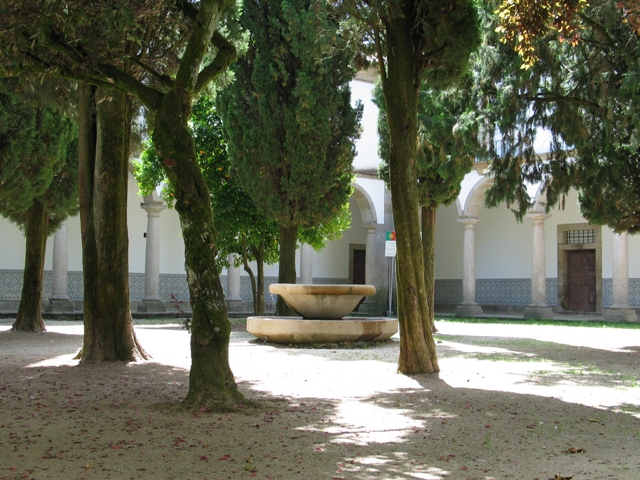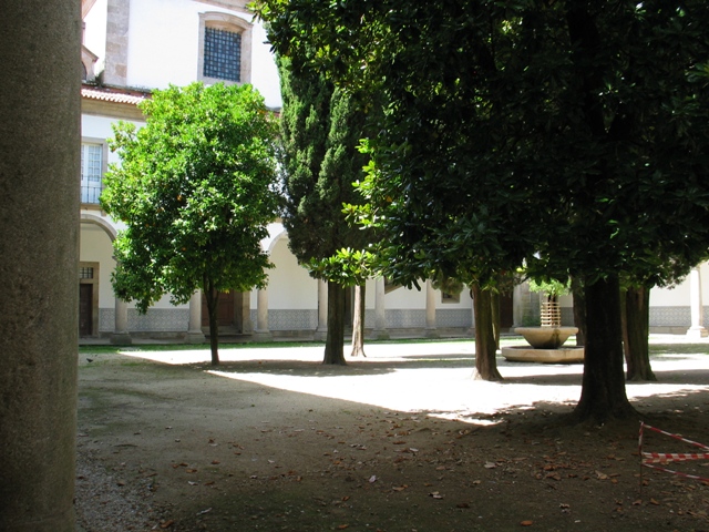 “Da antiga cerca dos frades ainda restam alguns recantos aprazíveis.” (…) O claustro, recentemente reconstruído, é amplo mas singelo. Cada galeria conta nove tramos. Os arcos assentam em colunas toscanas.” GP1 Este claustro referido no Guia de Portugal era, presumivelmente, de um claustro dividido em quadrantes ornados com vegetação e uma fonte central. Actualmente, o claustro é formado por um terreiro arborizado maioritariamente com Cupressus sempervirens e uma fonte ao centro.