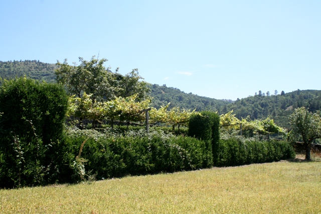 A delimitar o terreiro da entrada existe uma sebe de buxo (buxus sempervirens). Este também está presente numa sebe talhada em forma de ameias que limita o pomar localizado a sul.