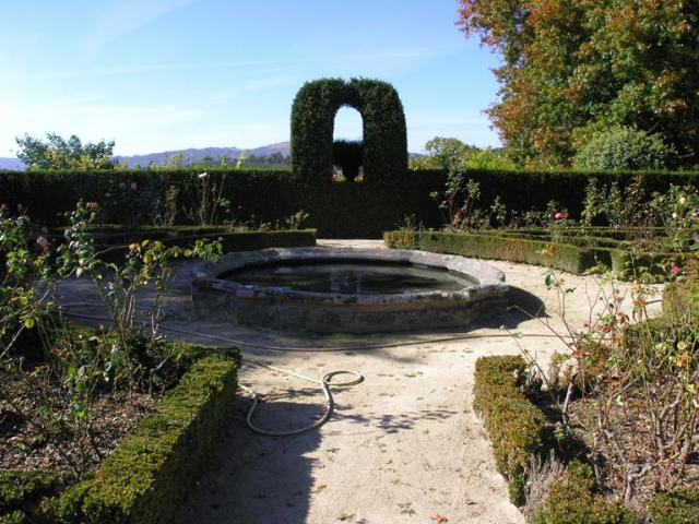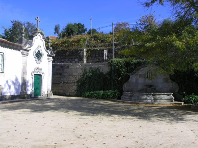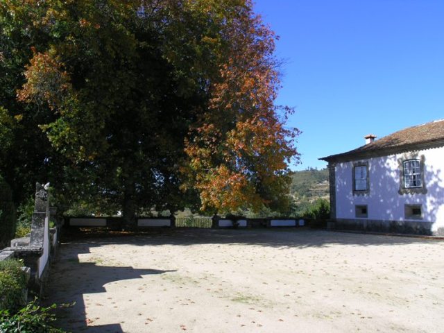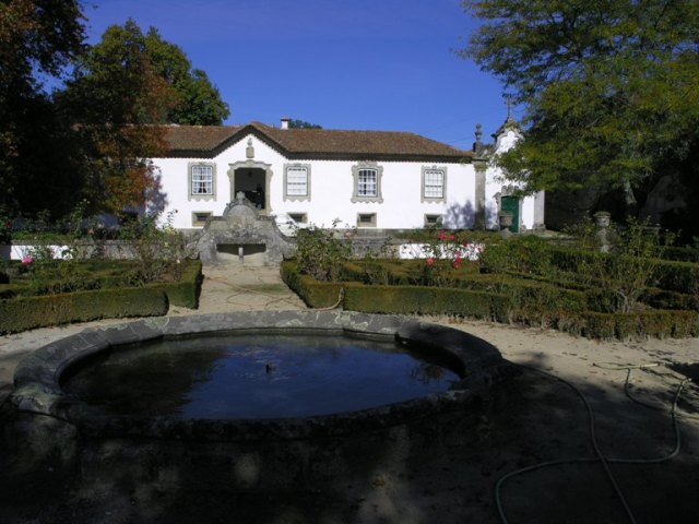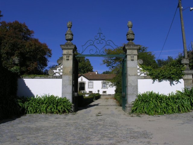 A fachada principal virada a sul integra-se em harmonia com um amplo terreiro em gravilha pontuado por um grande Carvalho, que promove vistas para a paisagem adjacente a poente, funcionando como um miradouro. No lado mais a nascente do terreiro encontra-se uma fonte em granito onde está localizado uma pequena estatueta de um santo. Em frente ao terreiro e mais a sul está um pequeno e gracioso jardim de quatro cantos em buxo topiado, preenchido com roseiras, com uma taça de água ao meio, e está separado do terreiro por um murete que integra algumas namoradeiras. Sabe-se, que existiu outrora outro jardim no lugar em que o actual ocupa, onde se encontrava um muro mais alto entre o jardim e o terreiro. Lateralmente ao jardim e alinhado com a capela está a entrada principal da propriedade.