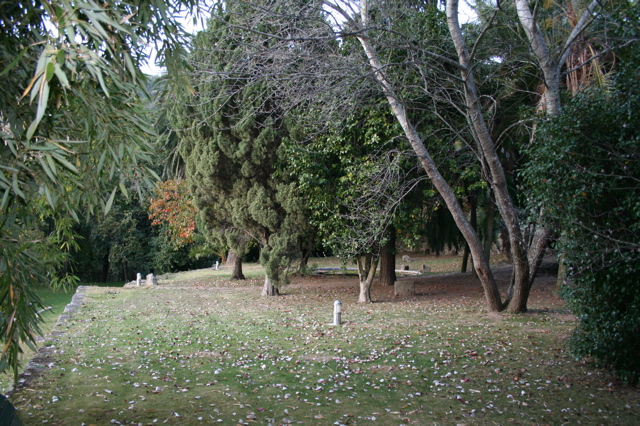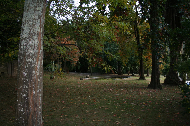 A entrada para a casa é precedida de um largo pavimentado a laje e calçada irregular de granito, pontuada por algumas árvores de onde se destaca uma imponente Magnolia grandiflora (magnólia-de-flores-grandes). É num patamar ligeiramente inferior e imediatamente a seguir à casa que se concentram os valiosos espécimes ornamentais, entre os quais, os ligustros, os bambus, as palmeiras de diversas espécies e das quais se distingue uma Phoenix reclinata (tamareira do Senegal), as camélias, os cedros-do-Buçaco, e como não poderia deixar de ser alguma vegetação ripícola interessante. Ainda neste patamar evidencia-se um lago oval. Na quinta também podemos encontrar cascatas, trilhos e outros charcos criados mais recentemente que acentuam o carácter romântico do espaço. Os patamares seguintes abrem numa espécie de varandas e esplanadas para o Rio Douro.