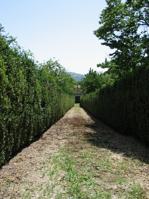 No alinhamento do portal de acesso ao pátio surge uma alameda de sebes de buxo arbóreo, relativamente altas, que terminam num outro portão de ferro forjado a Norte, junto à via pública. De um lado e outro destas, uma ou outra árvore de fruto ainda subsiste.