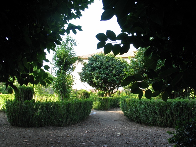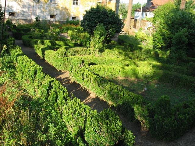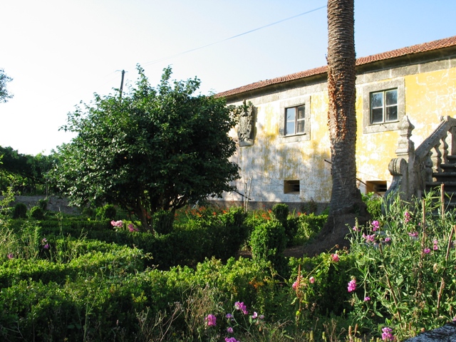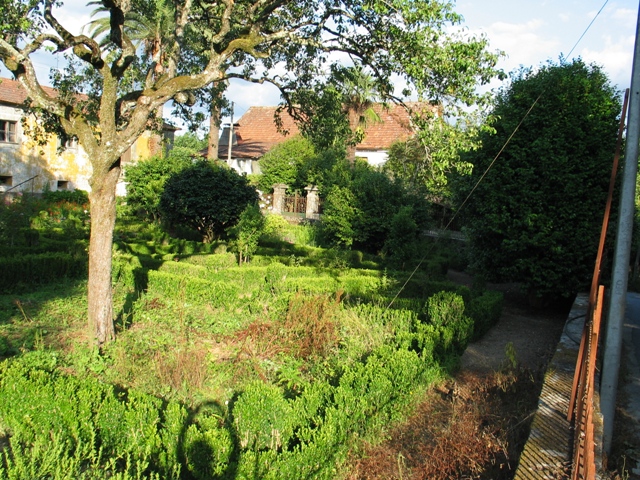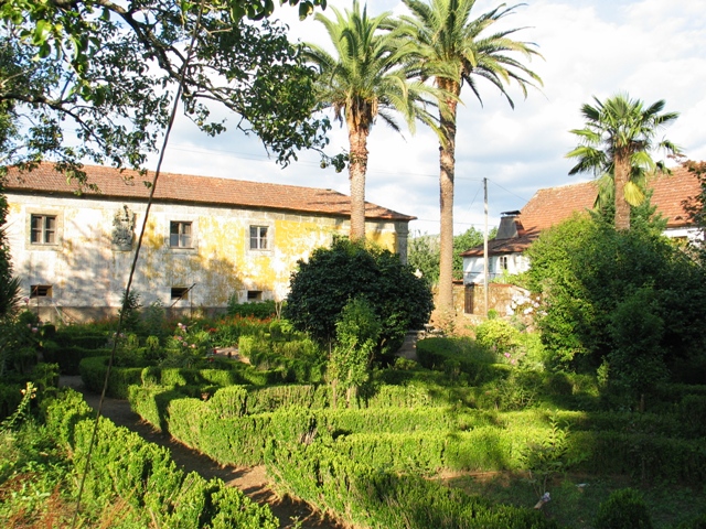 O jardim é formado por canteiros de buxo arbóreo mas a falta de manutenção e de corte das sebes não possibilita a visualização da geometria do conjunto. Ainda subsistem algumas plantas dentro dos canteiros, embora sem expressão ornamental. Ao nível arbóreo, para além das palmeiras já referidas, existe uma outra (Chamaerops sp.) e três camélias de pequeno/ médio porte. Na descrição que o site da DGEMN (Santos, João, 1996) apresenta sobre o espaço referem-se cedros. No então, aquando da visita realizada ao local, verificou-se já não existirem.