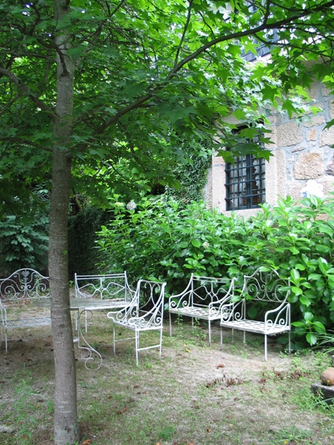 Ao jardim acede-se a partir do segundo piso da casa ou, directamente, a partir da rua. Neste caso, segue-se um caminho, alinhado pelo portão de acesso, que se prolonga por umas escadas em granito, de aspecto tosco, que conduzem até ao patamar superior do jardim. A antecede-lo, encontra-se um terreiro rematado, a Nordeste, por um imponente muro em pedra, devido à sua grande altura, a que se associa um tanque rectangular em granito, para lavagem de roupa, alimentado com água a partir de duas pequenas carrancas. Daqui acede-se a um segundo patamar, a cota mais elevada, onde se encontra outro jardim de buxo e ainda aos patamares superiores onde existiam, antigamente, a horta e o pomar, hoje não cultivados.