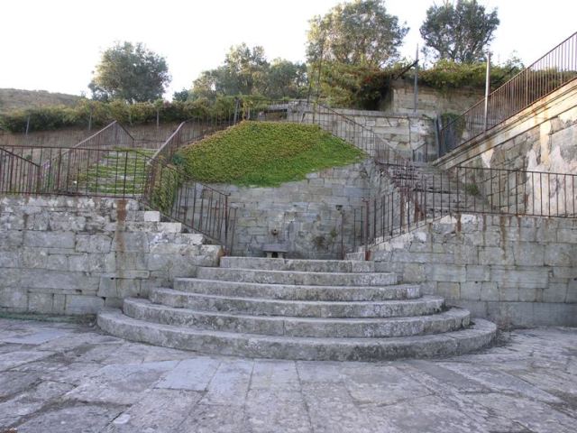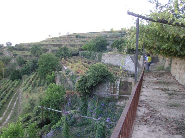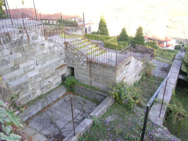 A escadaria que encontramos, à esquerda, pouco depois de entramos na propriedade faz a distribuição para os diferentes pontos da quinta votados ao recreio e envolvidos por áreas de produção de vinha. Ao subirmos a escadaria do lado direito acedemos a um primeiro patamar onde outrora seria um jardim, assim como no patamar que o antecede. No primeiro patamar encontramos ainda uma fonte incrustada no muro, com vestígios de reboco pintado a amarelo ocre, ornamentada por figuras zoomórficas.