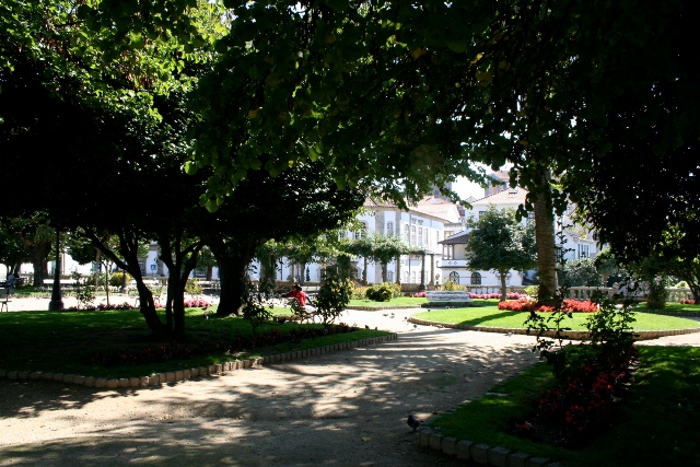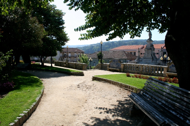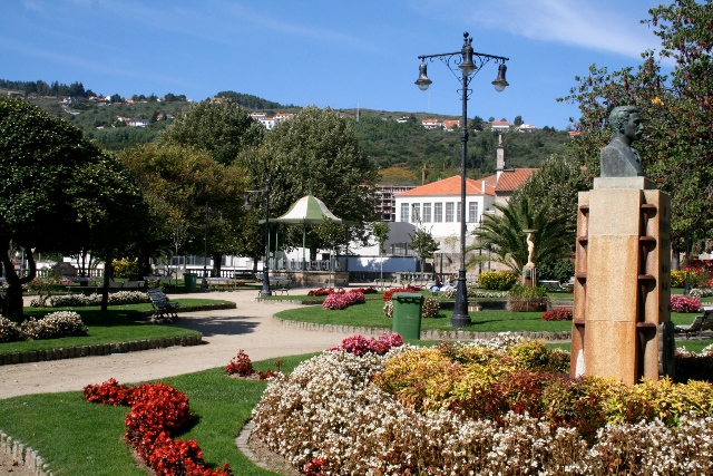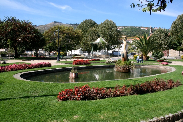 O Jardim desenvolve-se no terrapleno do antigo passeio, sustentado por muros em pedra, com excepção do limite junto ao edifício dos Paços do Concelho, sobre o qual assenta uma balaustrada que intercala com bancos em pedra revestidos, pelo lado interior, a azulejo. Nos cantos a balaustrada é substituída por uma pérgola criando pontos para apreciação da paisagem envolvente, hoje muito degradada, e actualmente sem amplitude visual. O jardim é organizado segundo um eixo central definido por um largo caminho que o divide, quase simetricamente, em dois grandes rectângulos. Este caminho central remata a sul, numa outra pérgola, de feição idêntica mas de maiores dimensões e também em articulação com a métrica da balaustrada. Os rectângulos dividem-se em canteiros menores que se organizam em torno de um elemento central - um lago oval, com estátua e repuxo - e elementos circulares provavelmente destinados a uma plantação especial. Um deles está ocupado com o coreto. Ainda de referir a existência de uma escultura, em bronze, do busto do poeta Fausto Guedes Teixeira, da autoria de Costa Mota Sobrinho, colocado no lado nascente, em frente aos paços do concelho.