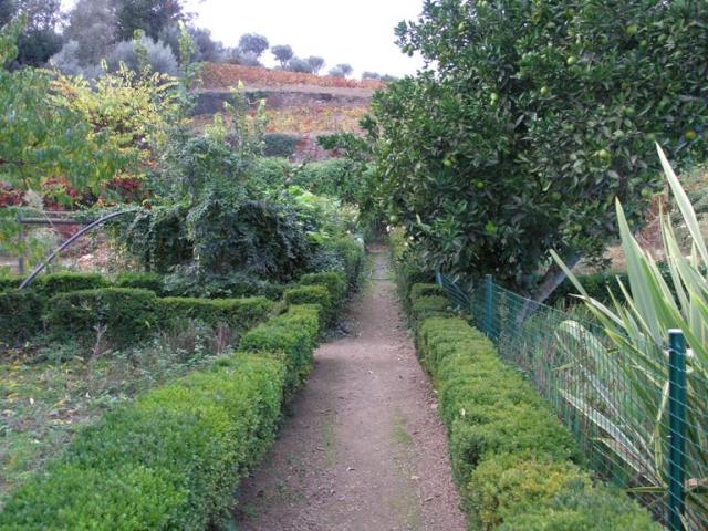 O patamar a poente deste conjunto da casa e jardins formais, onde anteriormente se terão cultivado plantas de interesse hortícola e pomares está hoje parcialmente ocupado por uma moderna piscina e um relvado.