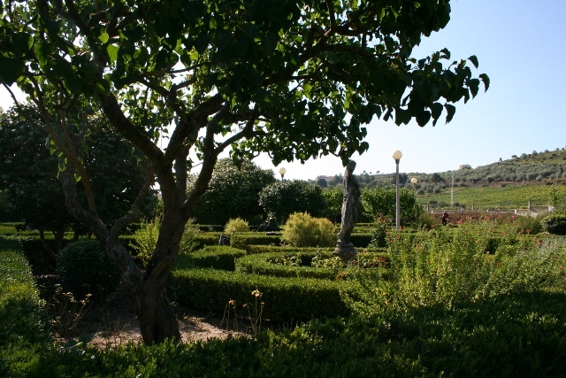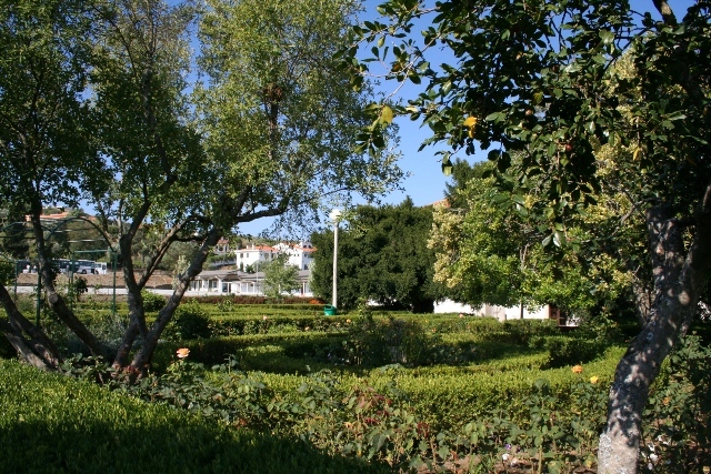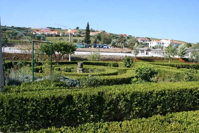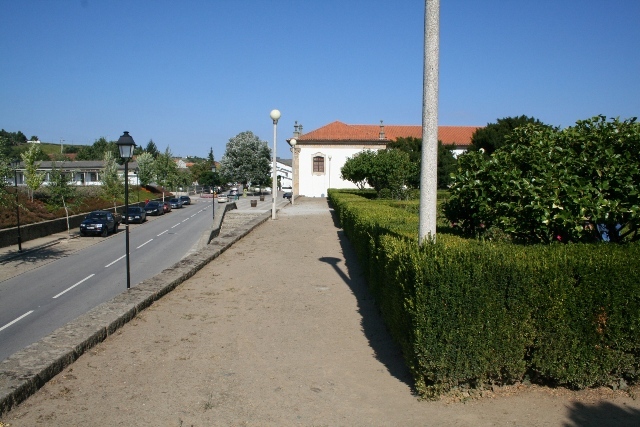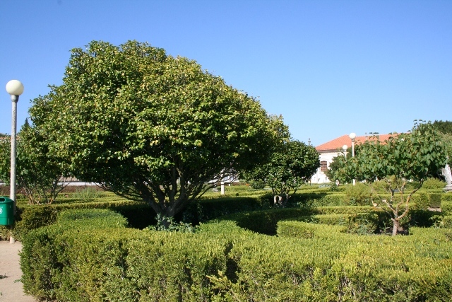A nascente da casa e num patamar superior, acessível por escadarias de granito, encontra-se um jardim formal, de canteiros delimitados por banquetas de buxo anão, interiormente plantados com arbustos e herbáceas ornamentais, como roseiras, folhados e alfazemas. Na estrutura verde destacam-se três camélias, um evónimo de grande porte e dois magníficos teixos que marcam uma das entradas para o jardim e já referidos, em 1962, por Ilídio de Araújo na sua obra Arte Paisagista e Arte dos Jardins em Portugal. O lago em granito, circular e com repuxo, é o elemento central e focal do jardim e é a partir dele que se estrutura o desenho em buxo. No espaço circundante ao lago destacam-se os bancos curvos de pedra de granito e, sobre estes, novos arcos metálicos, com roseiras recentemente plantadas, acusando uma tentativa de recriar a estrutura que em tempos aí existiu. O arquitecto paisagista Ilídio Araújo refere, no seu livro Arte Paisagista e Arte dos Jardins em Portugal, um “jardim constituído por um amplo terrapleno com canteiros recortados por banquetas de buxo, tendo no meio algumas esculturas e pequenos tanques com repuxos”. Actualmente, os “pequenos tanques com repuxos” não se encontram no jardim.