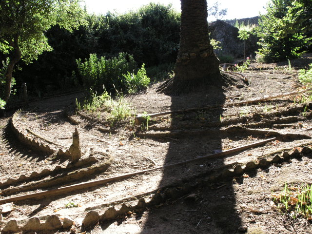 O jardim fica do lado da fachada lateral a sudoeste, onde uma das portas de entrada da propriedade marca a charneira entre o jardim e o edifício. O jardim da Casa da Quinta das Quintãs preserva um desenho de traço romântico com canteiros arredondados, delimitados por calhaus de granito. O lago, a gruta e o camaranchão em betão são elementos dominantes no jardim de forte carácter cenográfico, envolvidos por enormes árvores. Entre elas, árvores de grande porte como Magnolia grandiflora, Tilia argentea, uma palmeira Phoenix canariensis, e outras.