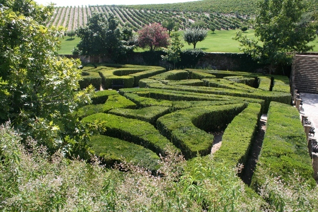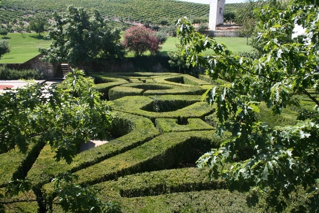 Também no início do século XIX, pela altura da construção da casa, foram plantadas as primeiras vinhas e provavelmente o jardim mais antigo que compreende o parterre que está adjacente ao lado sul da casa. Este jardim está definido através de dois eixos perpendiculares, que desenham quatro canteiros, e no seu cruzamento está uma fonte em granito com repuxo. O pavimento é igualmente em granito, disposto em pedras de tamanhos diversos mas com a superfície regularizada. A unidade neste jardim assenta nos canteiros de buxo muito bem conservados, com aproximadamente cem metros quadrados cada um. O desenho repete-se igualmente em cada canteiro, e tem como motivo principal uma cruz que ocupa a sua área, definida por fiadas duplas de buxo.