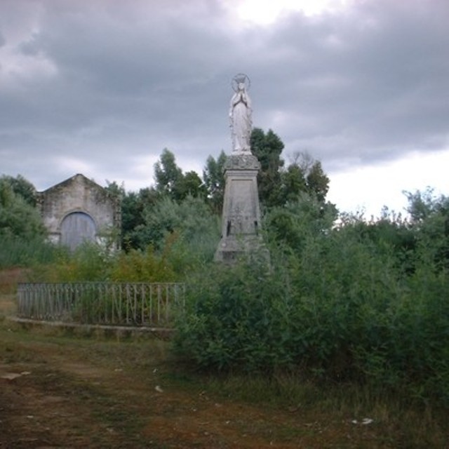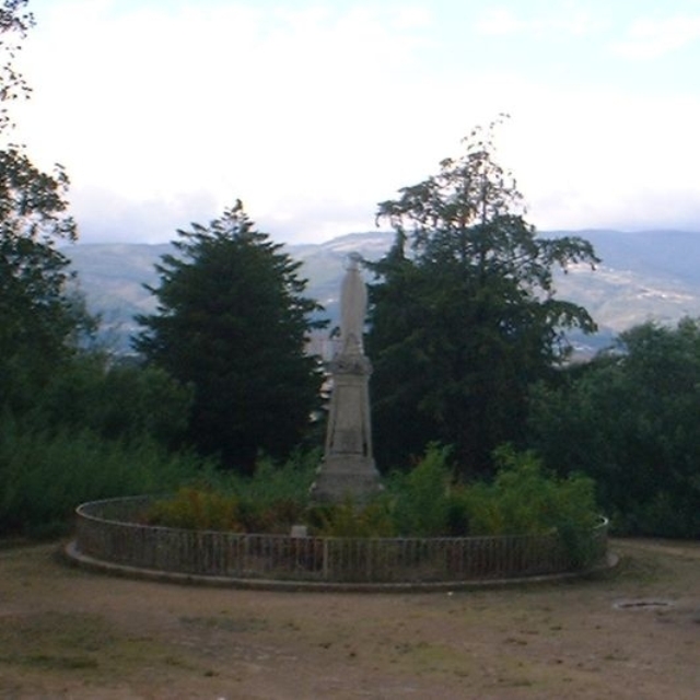 A imagem de Nossa Senhora de Lurdes encontra-se numa plataforma circular de com vista de 180º sobre Vila Real e sobre o sistema montanhoso Marão – Alvão. Encontra-se no local original da sua inauguração, em 1909, servindo de ponto focal para o principal acesso ao Santuário, no centro do planalto precedente da capela. A estátua em mármore apresenta as características próprias da representação iconográfica religiosa da Nossa Senhora de Lurdes, das quais se destacam a disposição das mãos, as rosas entre os dedos dos pés da Virgem e o Rosário pendente sobre o braço direito. O supedâneo de granito que suporta a imagem está rodeado por uma vedação em ferro fundido, com dois portões em lados opostos.O templo encontra-se num nível superior em relação à imagem, numa plataforma rectangular. A Capela foi inaugurada em 1924, mas o que chega aos nossos dias é unicamente o Altar-Mor e a Sacristia anexa, sendo que provavelmente nunca a sua construção evoluiu para além disso.